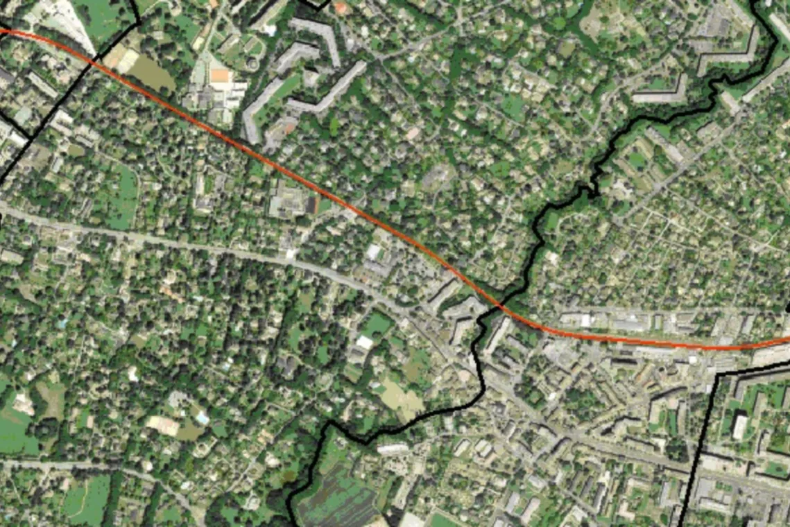 SPATIAL SA a de plus activement participé à la problématique des systèmes de coordonnées, qui sont différents sur Suisse et France. Les différences ont été compensées après la frontière de Moillesullaz dans une partie linéaire droite du tracé.